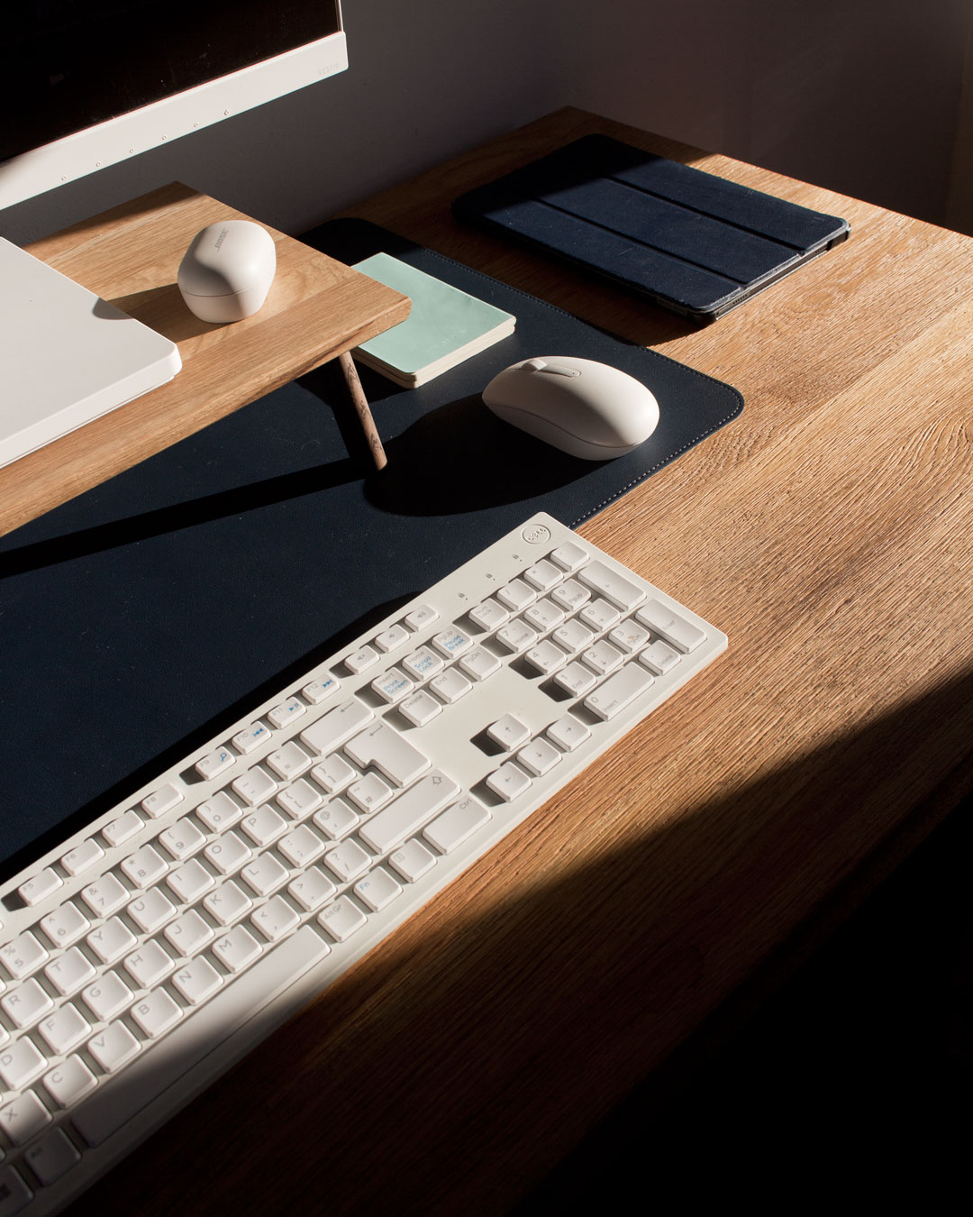 The shelf and legs of this monitor stand are made from solid European oak, finished in a duo of hard wax oils. These oils enhance the natural grain of the oak, provide protection from moisture, and give the stand a unique two-tone finish. They also mean you can maintain the stand over the years you will use it for by simply applying a clear oil coat every 12 months.